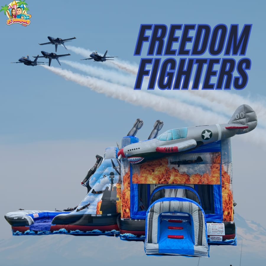 Looking to take your party to the next level? Fly into a world of excitement with the Freedom Fighters Dual Lane Combo (WET or DRY)! π This vibrant and patriotic bounce house is perfect for any occasion, offering endless entertainment for kids of all ages. With its unique dual lane design, this bouncy castle promises twice the fun and double the action. Whether it's a birthday party, community event, or just a day of fun in the backyard, this bounce house is sure to be the centerpiece of your celebration.