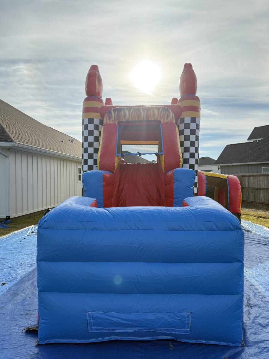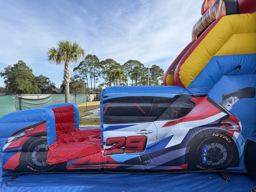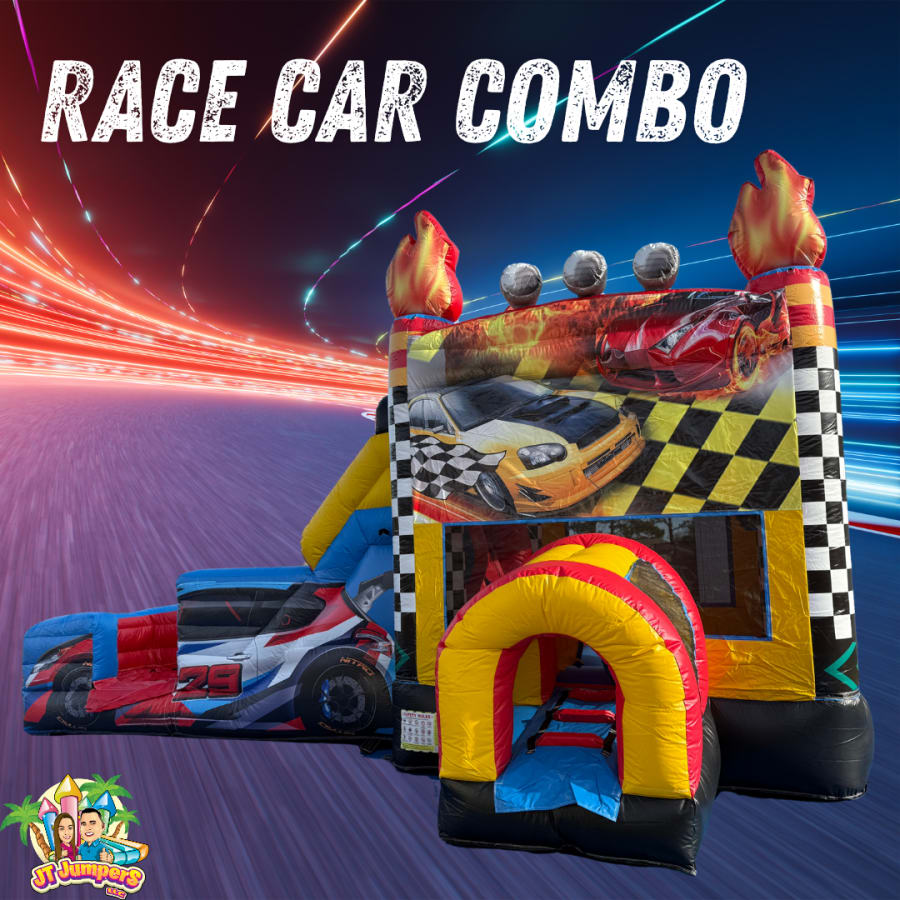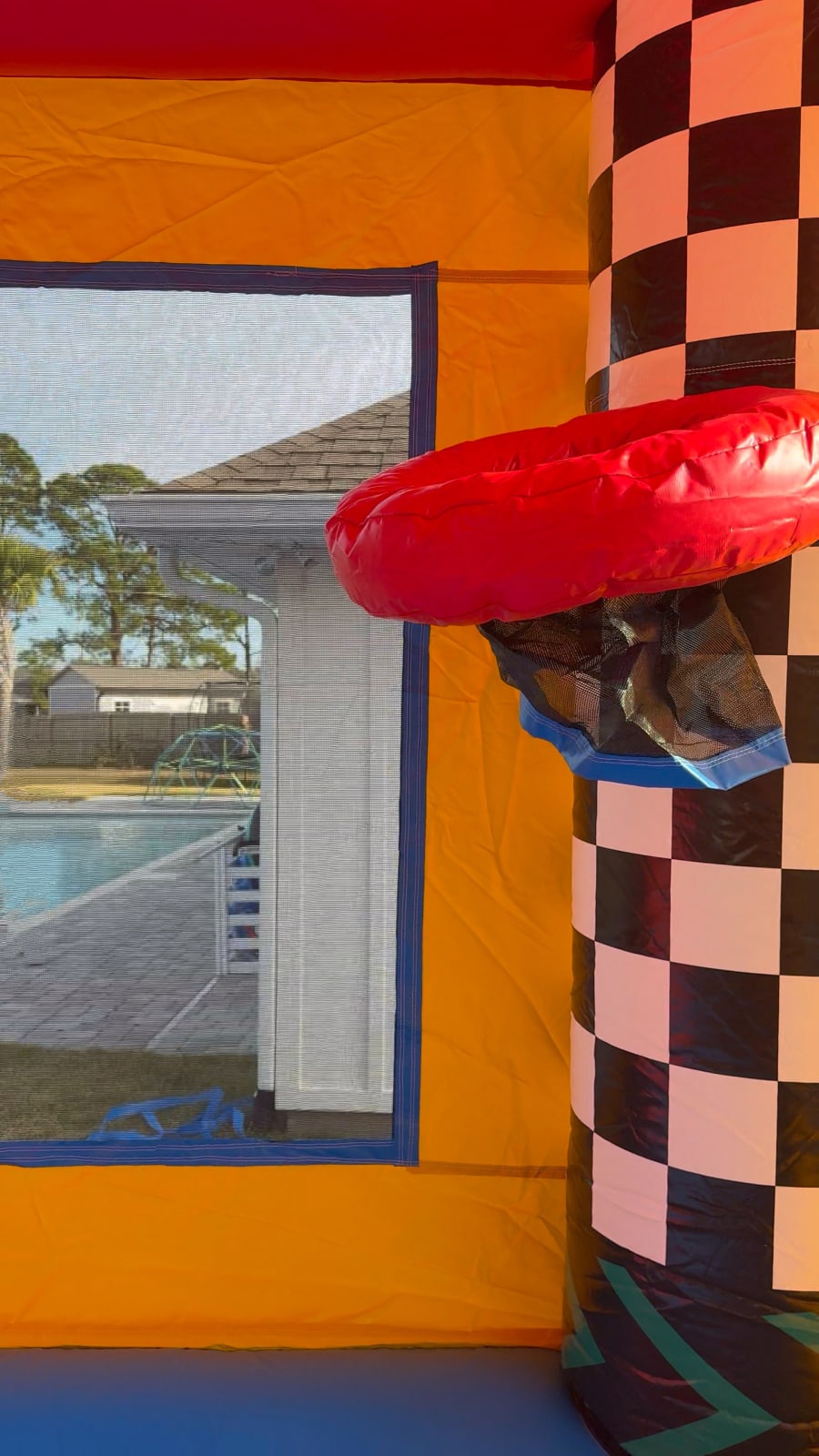 Race Car Combo (WET or DRY) delivers thrilling inflatable fun with race-themed graphics, a single-lane slide, climbing wall, and built-in basketball hoop. Choose a wet setup for splashy summer excitement or a dry layout for year-round use. Fast to inflate. Easy to supervise. Perfect for parties and events. 🚗💦🏁
