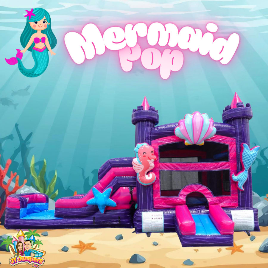 Turn any party into an under the sea celebration with the Mermaid Pop Combo (WET or DRY). This eye-catching bounce house and slide combo features 3D mermaid style pop-outs, vibrant colors, and a safe play area. Ideal for birthdays, school events, and themed parties. Quick setup. Big smiles. Memorable photos. πΈπ°