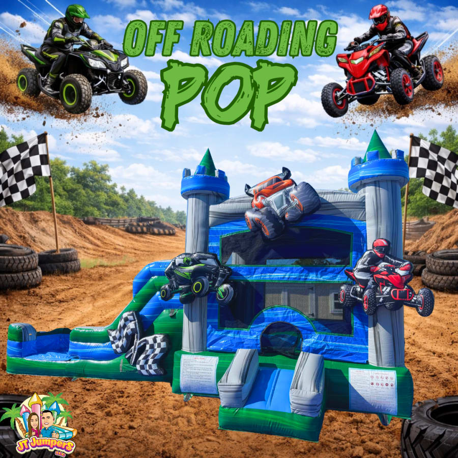 Start your engines and get ready for high-speed fun with the Off Roading Pop Combo from JT Jumpers! Designed for kids who love ATVs, dirt tracks, and racing adventures, this action-packed inflatable brings off-road excitement straight to your backyard.