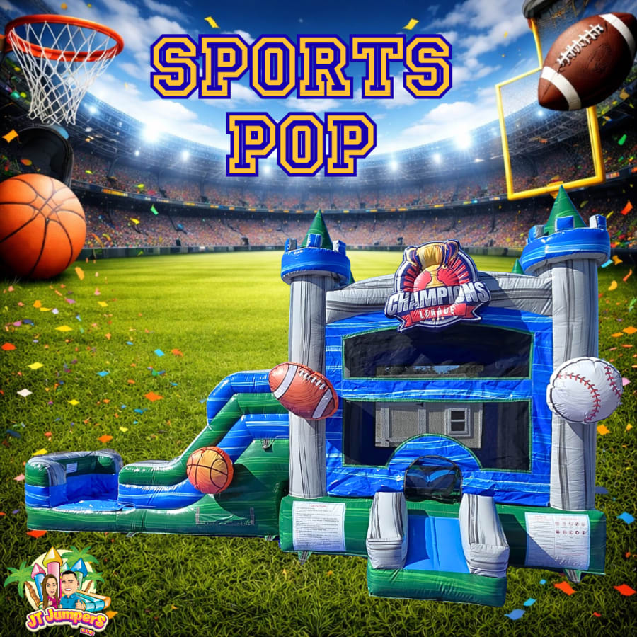 Game on! The Sports Pop Combo from JT Jumpers brings championship-level fun straight to your party. Perfect for kids who love football, basketball, baseball, and all things game day, this inflatable turns any event into a full-blown stadium celebration.