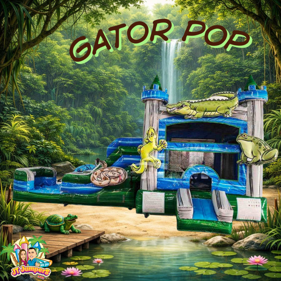 Get ready for wild backyard fun with the Gator Pop Combo from JT Jumpers! Inspired by swamp adventures and Florida wildlife, this inflatable is perfect for kids who love alligators, jungle vibes, and outdoor exploration.