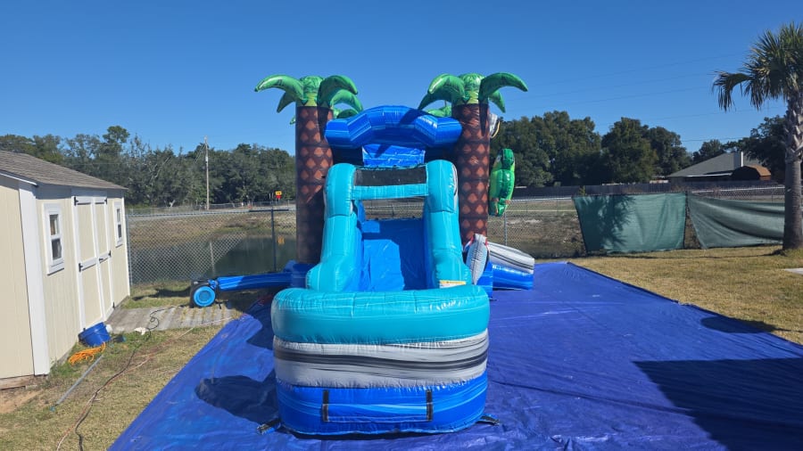• Attached slide for extra splash-worthy fun with inflated splash pad landing