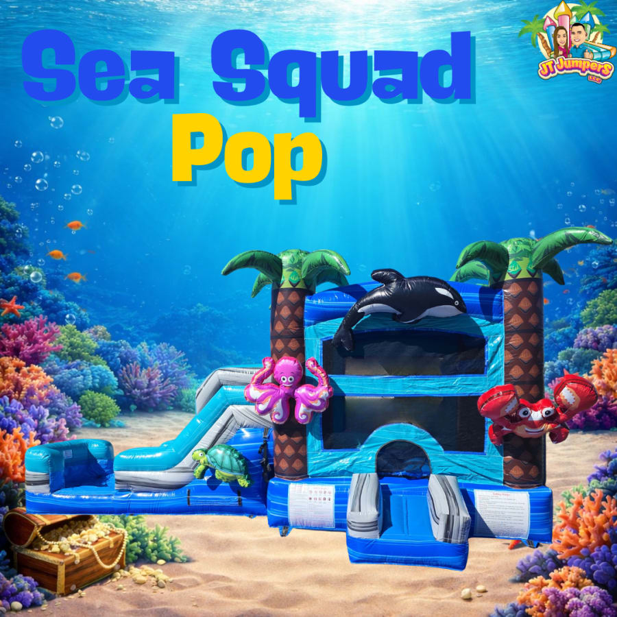 Dive into ocean-sized fun with the Sea Squad Pop Combo from JT Jumpers! Perfect for kids who love sea creatures, beach adventures, and underwater imagination, this inflatable turns any party into an under-the-sea celebration.