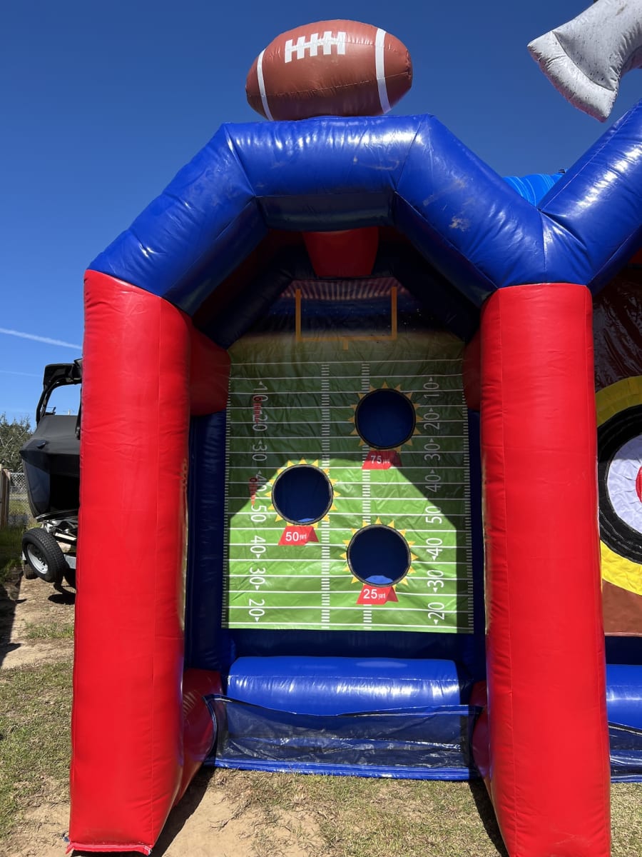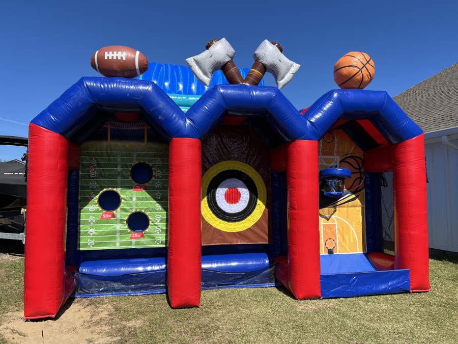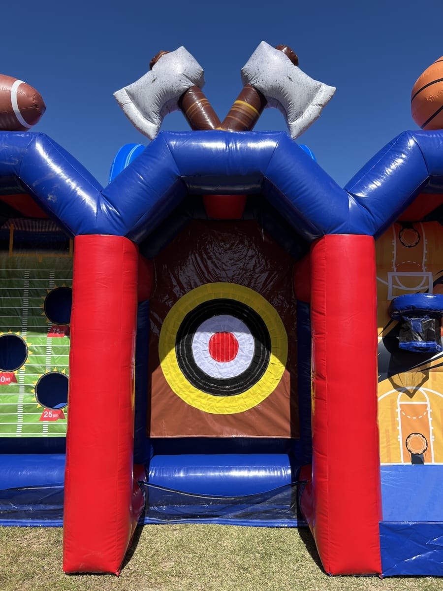 Introducing The Triple Play, the ultimate game station crafted for endless entertainment and fun for everyone! Imagine the thrill of playing basketball, the excitement of soft axe throwing, and the challenge of a football toss all in one place. Whether you're planning a party or just want to enjoy an exciting day with family and friends, The Triple Play is your perfect companion.