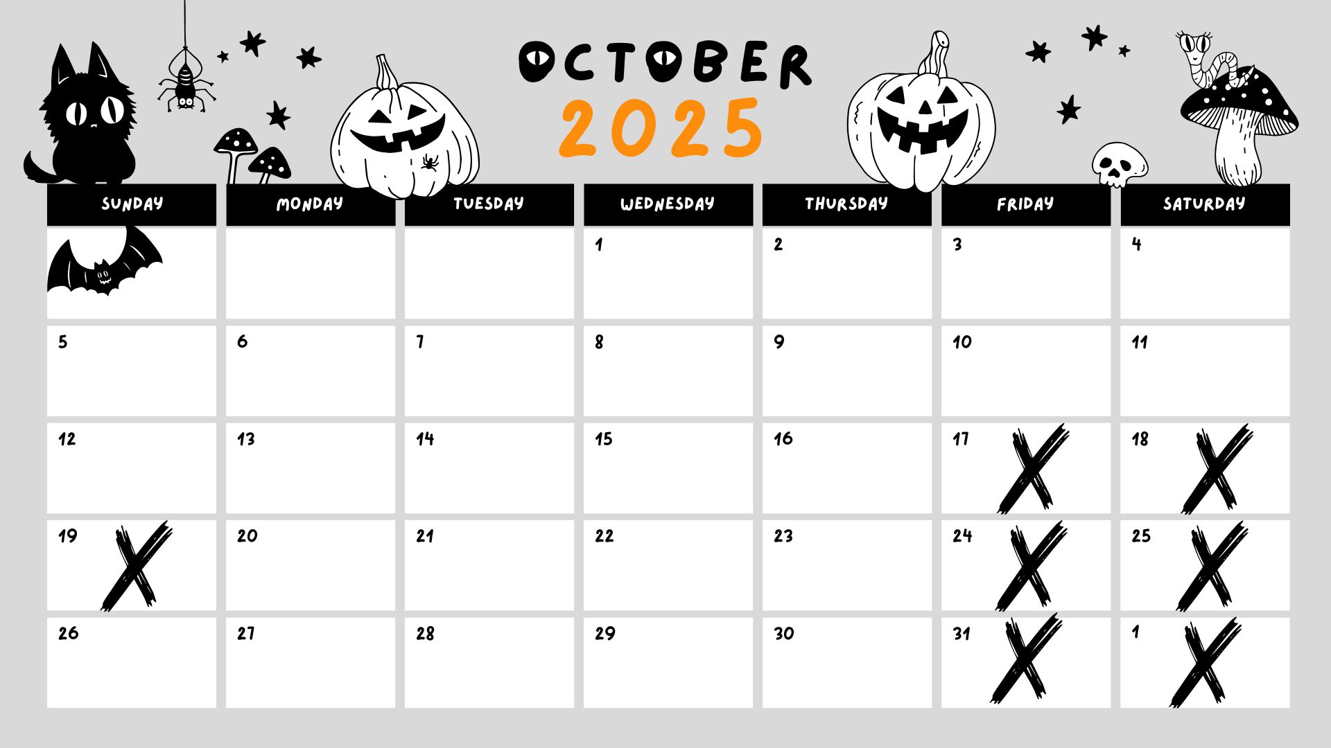 **Dates marked with "X" are unavailable**