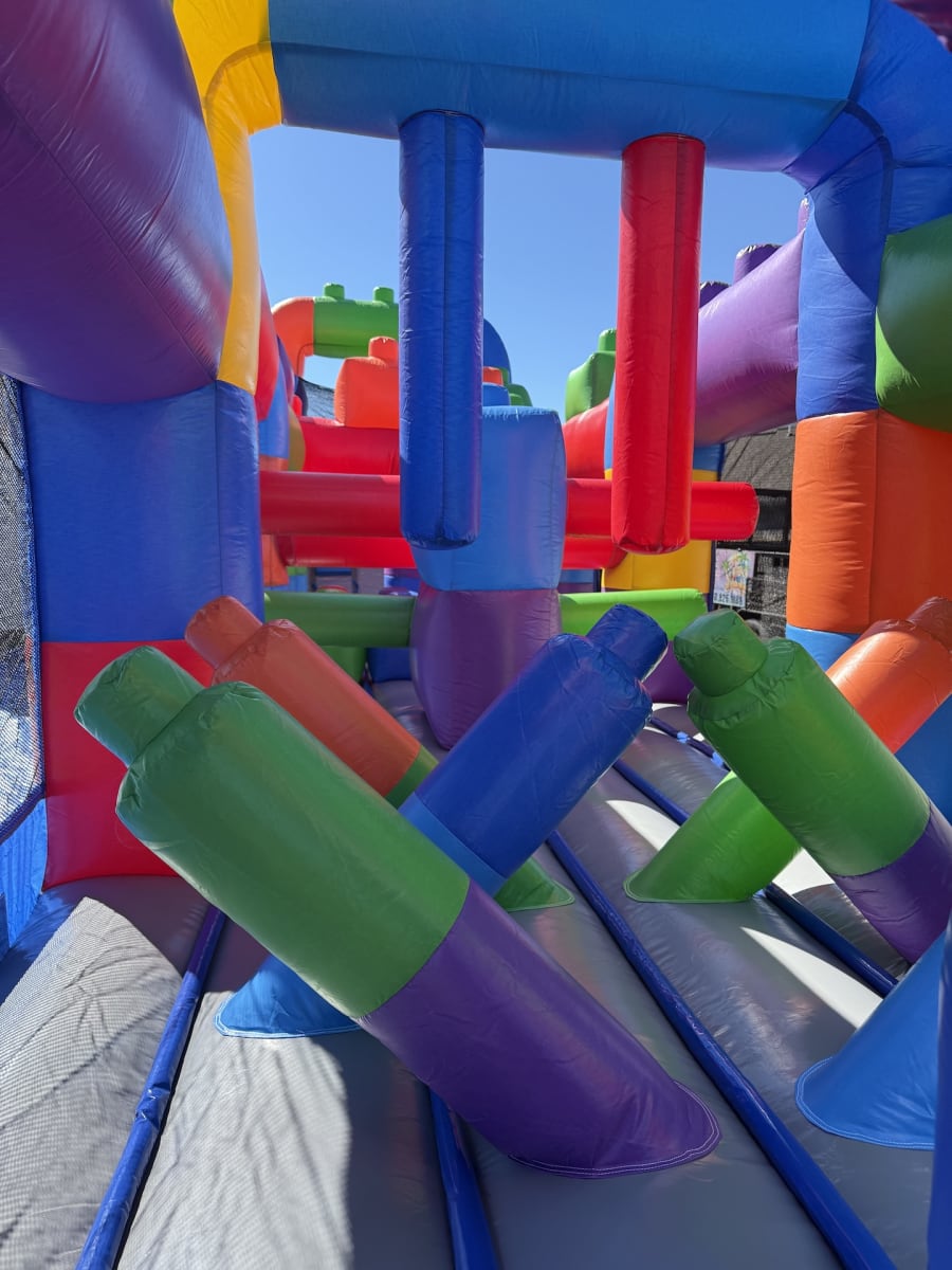 The Block Party Obstacle Course (WET or DRY) delivers nonstop excitement. Two lanes keep races tight and fast. Obstacles appear top, bottom, and from every direction. Players climb, crawl, dodge, and sprint to the finish. Perfect for block parties, school events, fundraisers, and family festivals. This dry course is built for high-energy play without water. 🏁