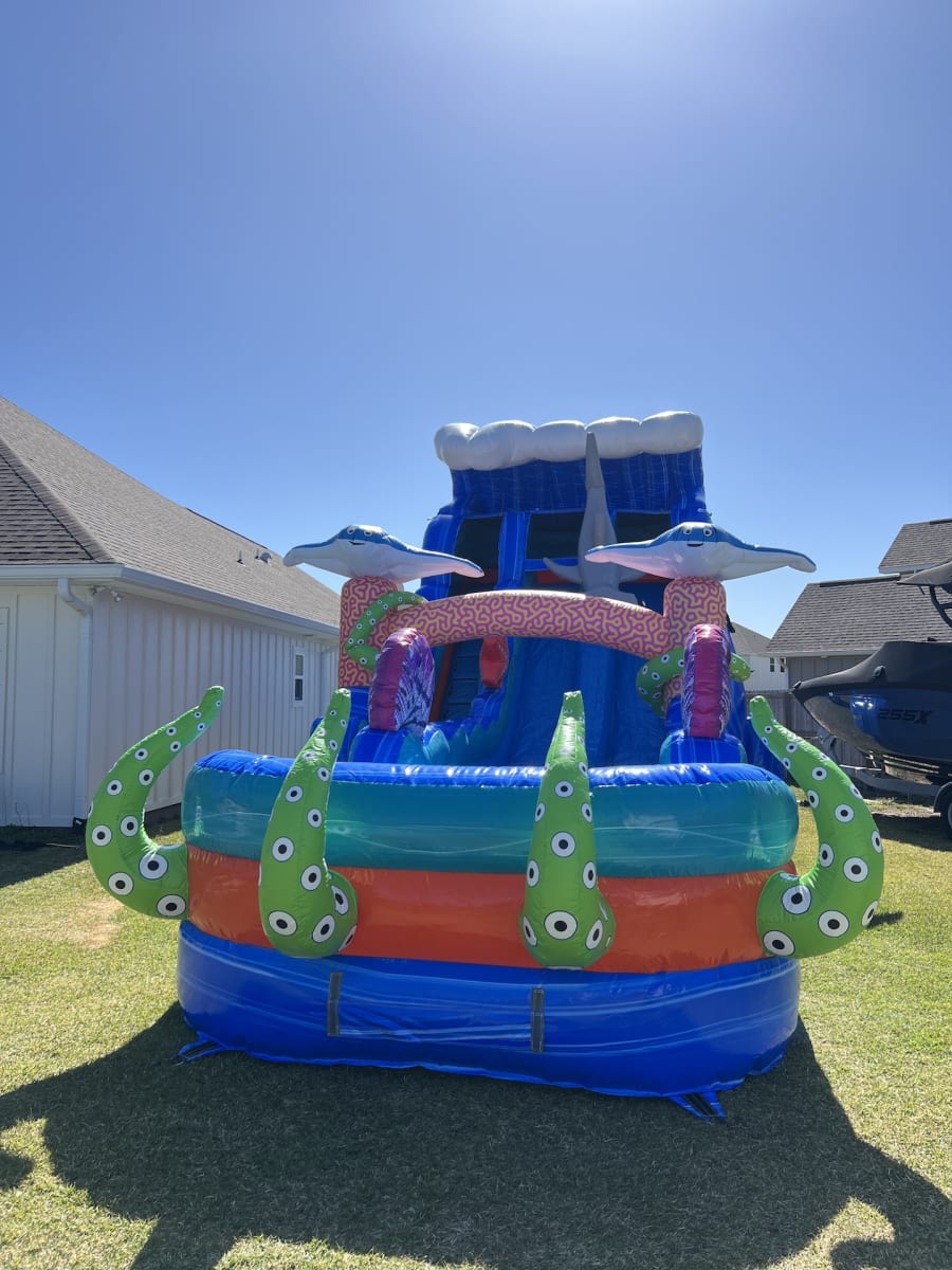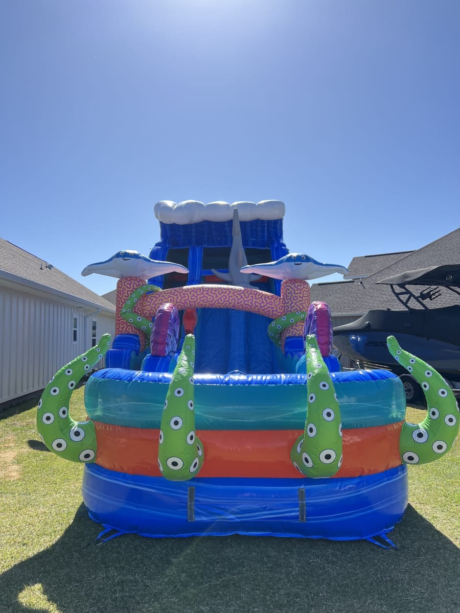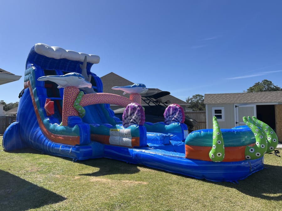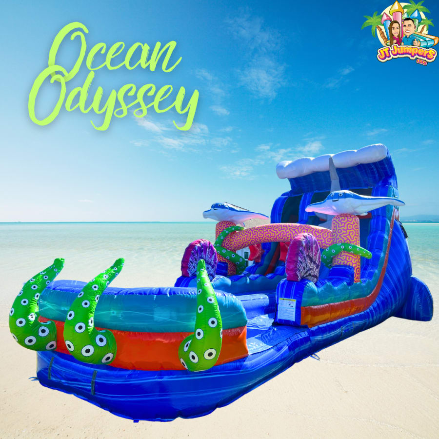 Whether you're hosting a birthday party, community event, or just looking to add some excitement to a sunny day, the 18' Ocean Odyssey Dual Lane Slide (WET) is the ideal choice. Its eye-catching design and thrilling slide experience will keep guests entertained for hours. Enjoy fast, reliable delivery and setup by our professional team, ensuring a safe and hassle-free experience. Contact us today to bring the ocean adventure to your backyard! 🌊