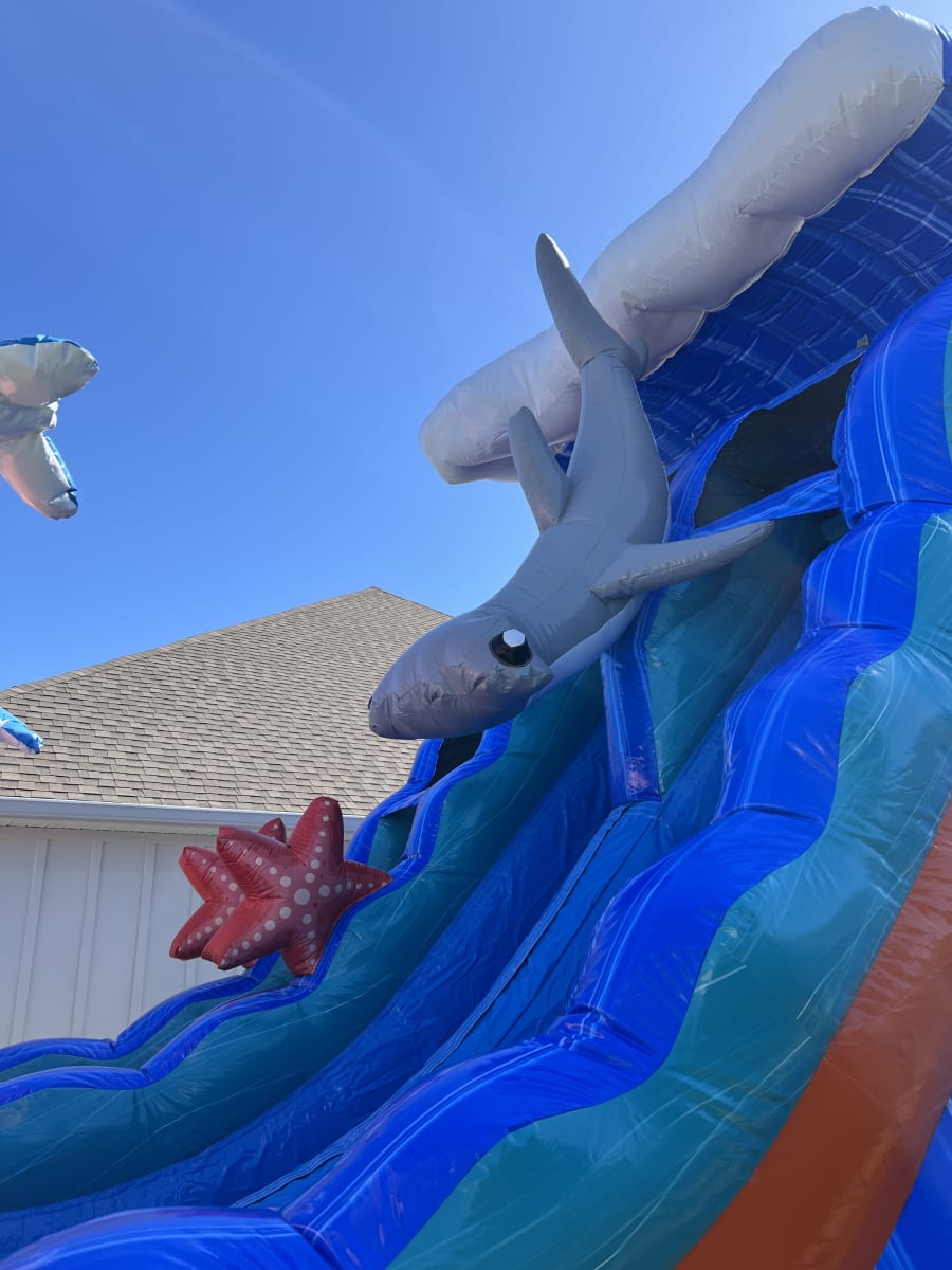 Transform your backyard into an undersea adventure with our 18' Ocean Odyssey Dual Lane Slide (WET)! Perfect for events or weekend fun, this inflatable slide adds a splash of excitement to any occasion. Dive into an ocean-themed paradise, featuring colorful elements like stingrays, starfish, shells, and even a formidable hammerhead shark. 🌟