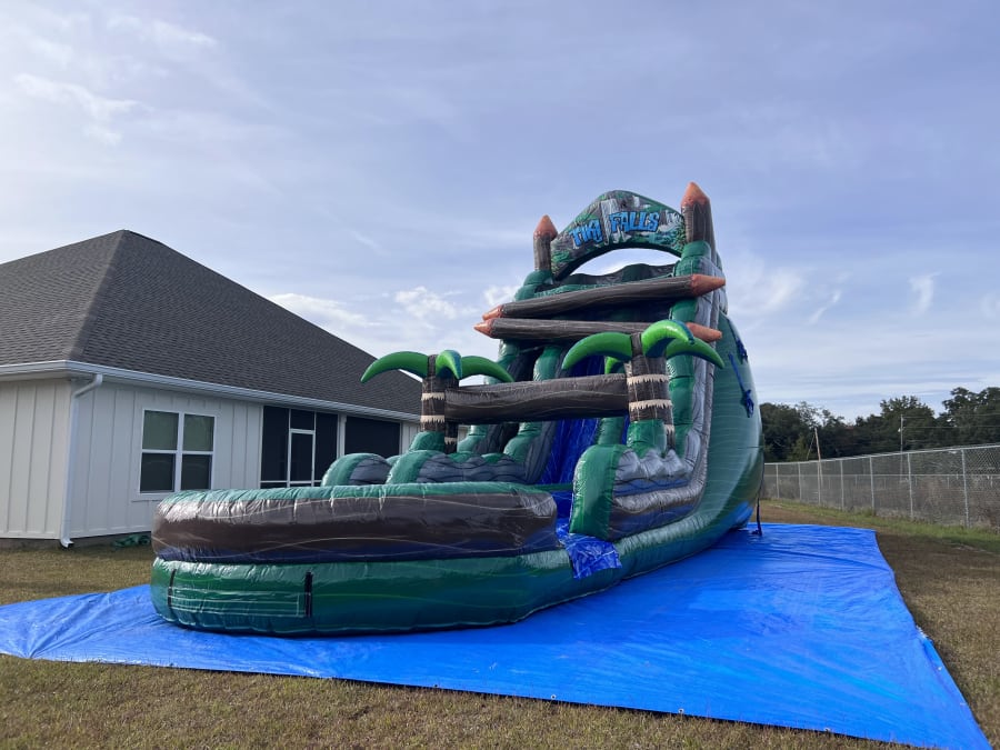 Get ready for an unforgettable adventure with the 22' Tiki Falls Dual Slide (WET), a towering inflatable slide that brings the thrill of a tropical escape right to your backyard! Perfect for birthdays, community events, or just a fun day in the sun, this dual-lane slide promises double the excitement with its breathtaking height and unique design featuring falling logs. Whether you're racing your friends down the slide or simply enjoying the splash at the bottom, the Tiki Falls slide is the ultimate way to cool off and have a blast this season.