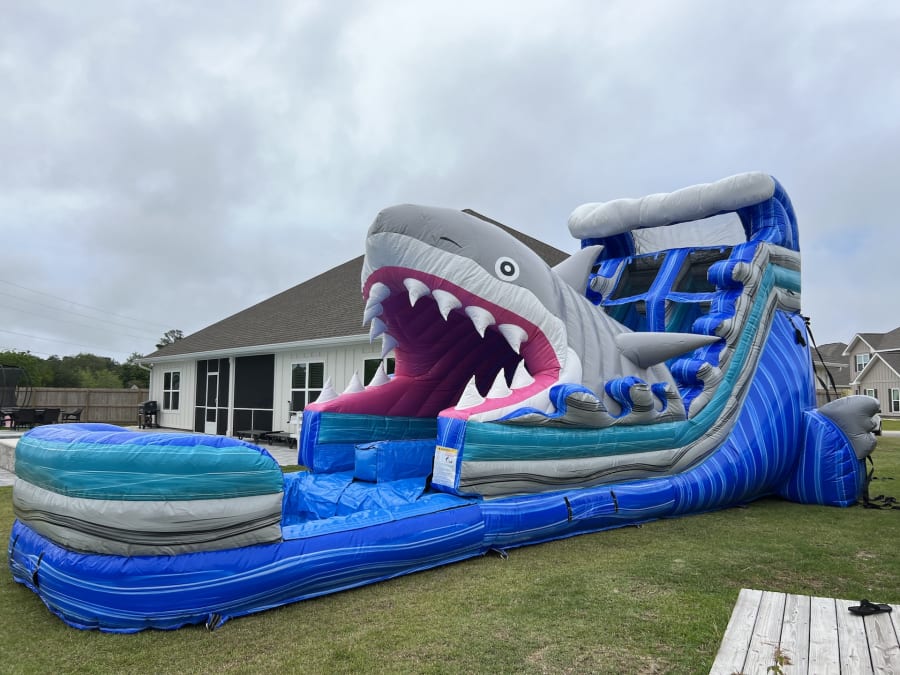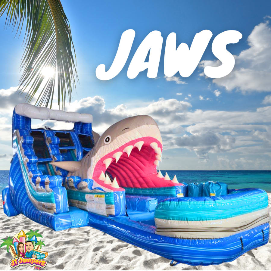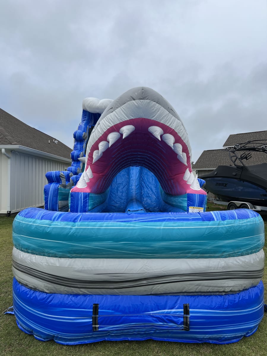 Don't miss out on the chance to bring this thrilling experience to your next event. Rent our 18' JAWS Dual Lane Slide (DRY) today and slide in style! 🎉