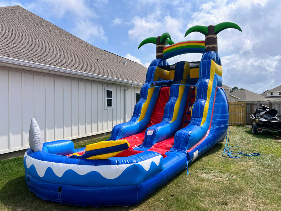 Our main service offers top-quality inflatable rentals, and the 15' Shark Bite Single Lane Slide is no exception. Whether you're hosting a birthday party, corporate event, or a backyard gathering, this slide is sure to be a hit with guests of all ages. 🎉