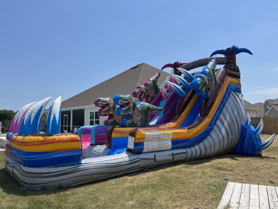 Bring the thrill of the Jurassic era to your next event with the 18' Rex Rampage Dual Lane Slide. Perfect for birthday parties, corporate events, or community gatherings, this slide promises hours of entertainment for all ages.