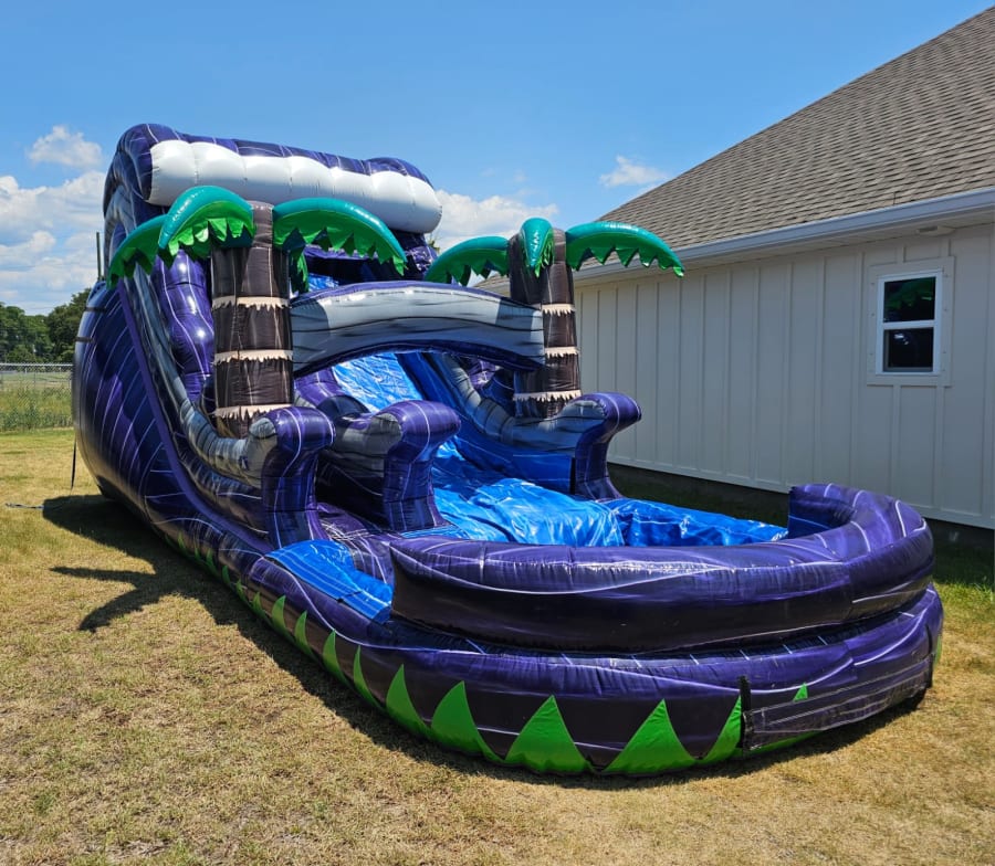 Get ready for an epic adventure with the 15' Royal Rapids (WET) single lane slide! This inflatable wonder features a massive wave and two towering palm trees, creating a tropical oasis right in your backyard. Perfect for all ages, the Royal Rapids can be enjoyed both wet and dry, making it ideal for any occasion.